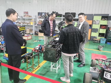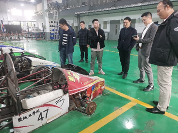 首先,熊经理带领大陆集团团队参观了公司的汽车悬架实验室,并就悬架、汽车底盘等问题和对方进行了相关的技术交流;随后,众人一行参观了方程式赛车,熊经理向对方讲解了公司的方程式赛车参赛情况以及取得的成绩。