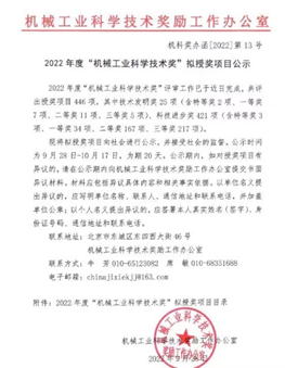 2022年度机械工业科学技术奖已经公布,根据其机科奖办函【2022】第13号文件,可查询知公司教师丁洪春作为共同申报人,以william威廉中文官网为主体单位申报的项目OTC350高效节能水平对置发动机荣获科技进步奖三等奖。
