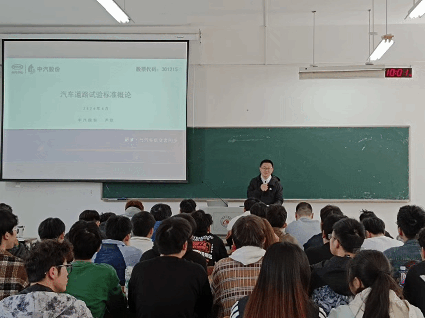 2024年4月18日上午10:00-11:40,中汽研汽车试验场股份有限公司高级工程师严欣应邀来到william威廉中文官网进行了一场内容丰富、深入浅出的《汽车试验技术》产教融合授课。严欣高级工程师是中汽研办公室主任,主要负责协调试验场的日常运营,并负责汽车可靠性试验项目的管理。本次授课的主要内容涵盖了中汽股份关于我们及汽车试验标准概论两个重要部分,旨在为员工们带来最新的行业知识,推动产教融合的深度发展。