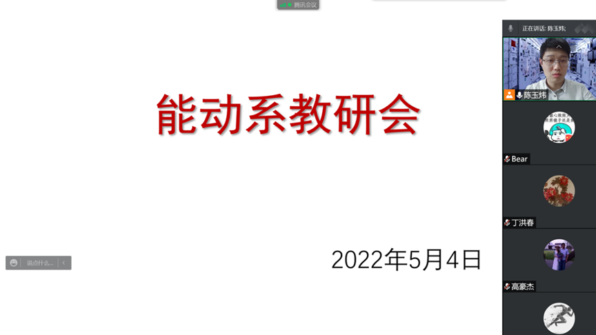 2022年05月04日下午2:30,能动系组织全体教师召开教研会议,副经理熊新参会。会议就当前封校期间的相关工作进行了部署和推进。
