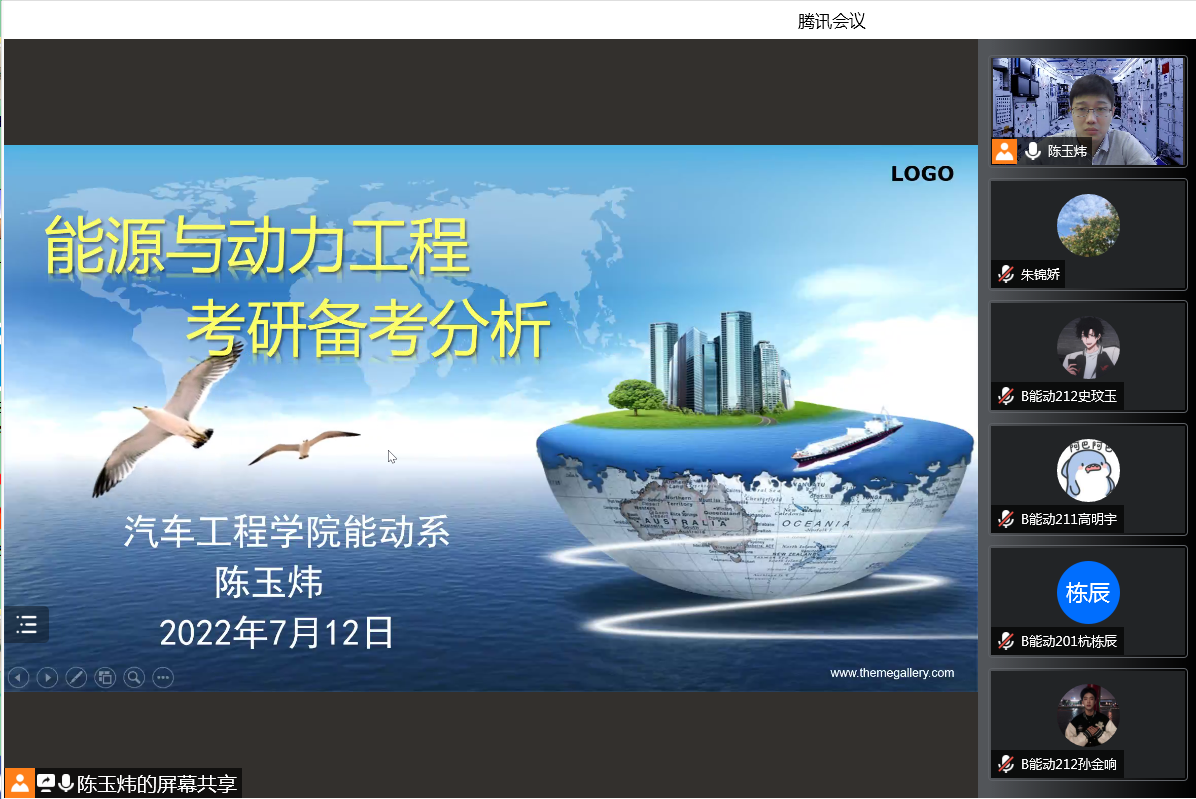 2022年07月12日晚上19:00,能动系主任陈玉炜面向19级、20级和21级能动系员工做考研讲座。