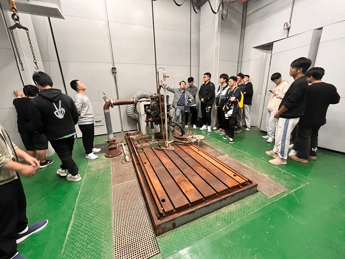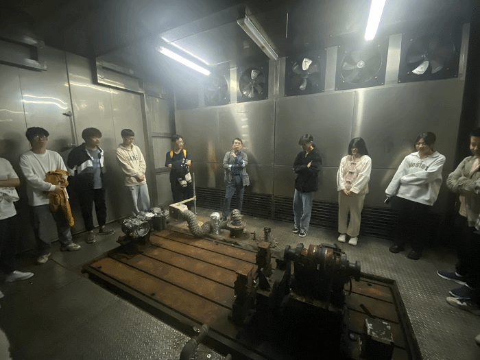 进入实验室,工作人员对于实验室中的仪器和设备做出了详细的讲解,重点介绍了柴油机排放标准测试室、高低温实验室和噪音实验室,同时在企业老师的指导下同学们完成了美国EPA标准下的通用汽油机六工况排放试验。通过本次参观学习同学们对本专业有了进一步的了解,深入认识到了内燃机发展过程的艰辛,并明确了未来学习方向和奋斗目标。