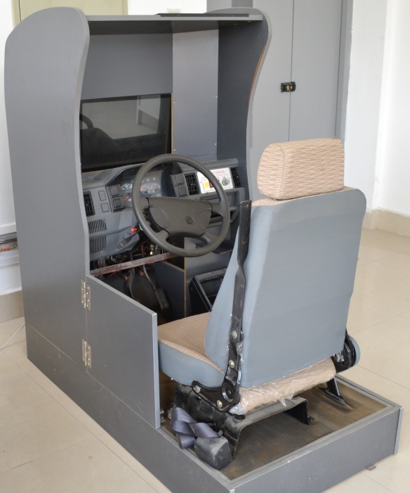 豪华微机控制主被动式汽车驾驶模拟器,在吸收国外先进技术的同时,结合本国国情。道路的模拟部分和标志标线全部按照最新国家交通法规设计,道路全部为国内道路,各操作方法与真车无异,视觉效果采用计算机实时成像、逼真度高,声音采用计算机语音合成技术,能逼真模拟汽车行进中的各种机械动力声、喇叭声、周围环境声等,是附合我国驾驶员培训与教学的现代化教学设备. 是以计算机仿真和计算机三维成像等高技术为核心的新一代汽车驶模拟器。它能模拟汽车驾驶的运行环境和操作效果,培训汽车驾驶人员。模拟系统的图形部分是由计算机实时形成的,学员在视频上看到的道路,自走车辆、各驾驶车辆、行人、建筑