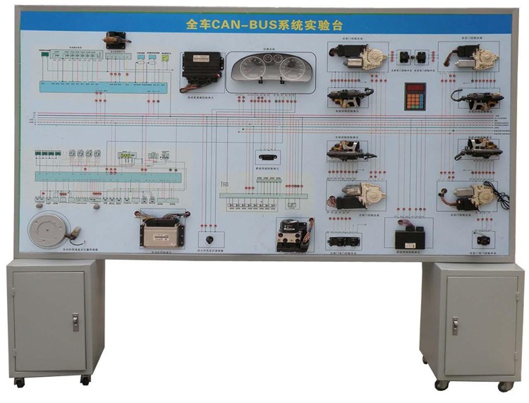 选用全新的大众帕萨特CAN—BUS局域网通讯系统,由动力系统和舒适系统两部分组成,系统包括发动机电控单元、自动变速器电控单元、ABS电控单元、电动后视镜、中控锁、电动门窗、防盗系统等元件、检测控制面板、故障控制器,可移动喷塑机箱。
