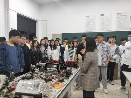 参观过程中,老师带领同学们参观了汽车构造实验室、汽车电器与电子技术实验室、汽车检测与诊断实验室、发动机拆装实验室、科研团队实验室等,并向同学们简单讲解了各类实验设备的功能及操作。