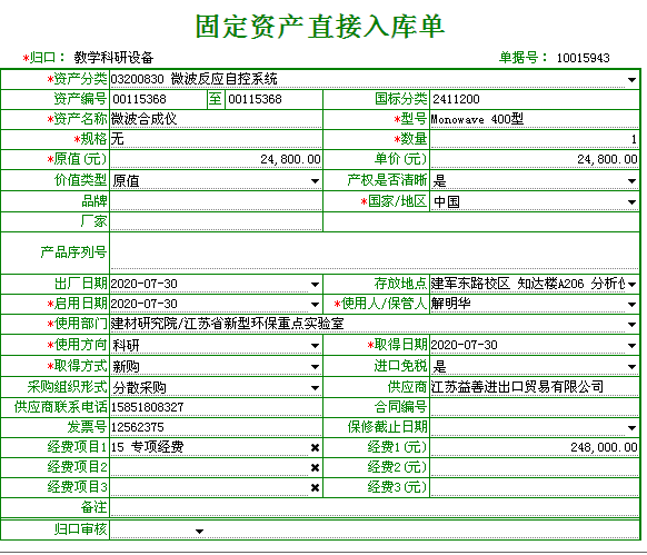 5.验收 所有仪器设备需要填写仪器设备验收单(下载网址https://lab.ycit.edu.cn/)