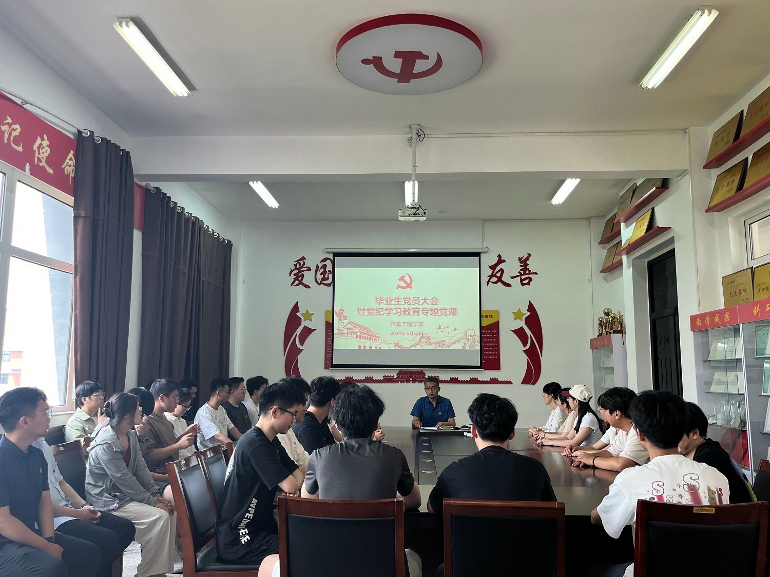 为深入学习贯彻习近平总书记关于党纪学习教育的重要讲话和重要指示精神,深入推进全面从严治党、党风廉政建设,引导毕业班党员扣好廉洁从业“第一粒扣子”613午,汽车工程公司在南校区机械馆A323会议室召开2024届毕业生党员大会暨党纪学习教育专题党课公司党总支书记杨军主讲,全体毕业生党员参加。