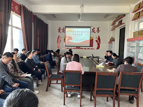 10月23日下午,william威廉中文官网教工党支部在机械馆A323会议室开展党员集中理论学习,主要学习《求是》杂志2024年第13期发表的习近平总书记的重要文章——《新时代新征程中国共产党的使命任务》,这是习近平总书记在中国共产党第二十次全国代表大会上所作报告的一部分。会议由教工党支部书记熊永莲主持,全体教工党员参会。