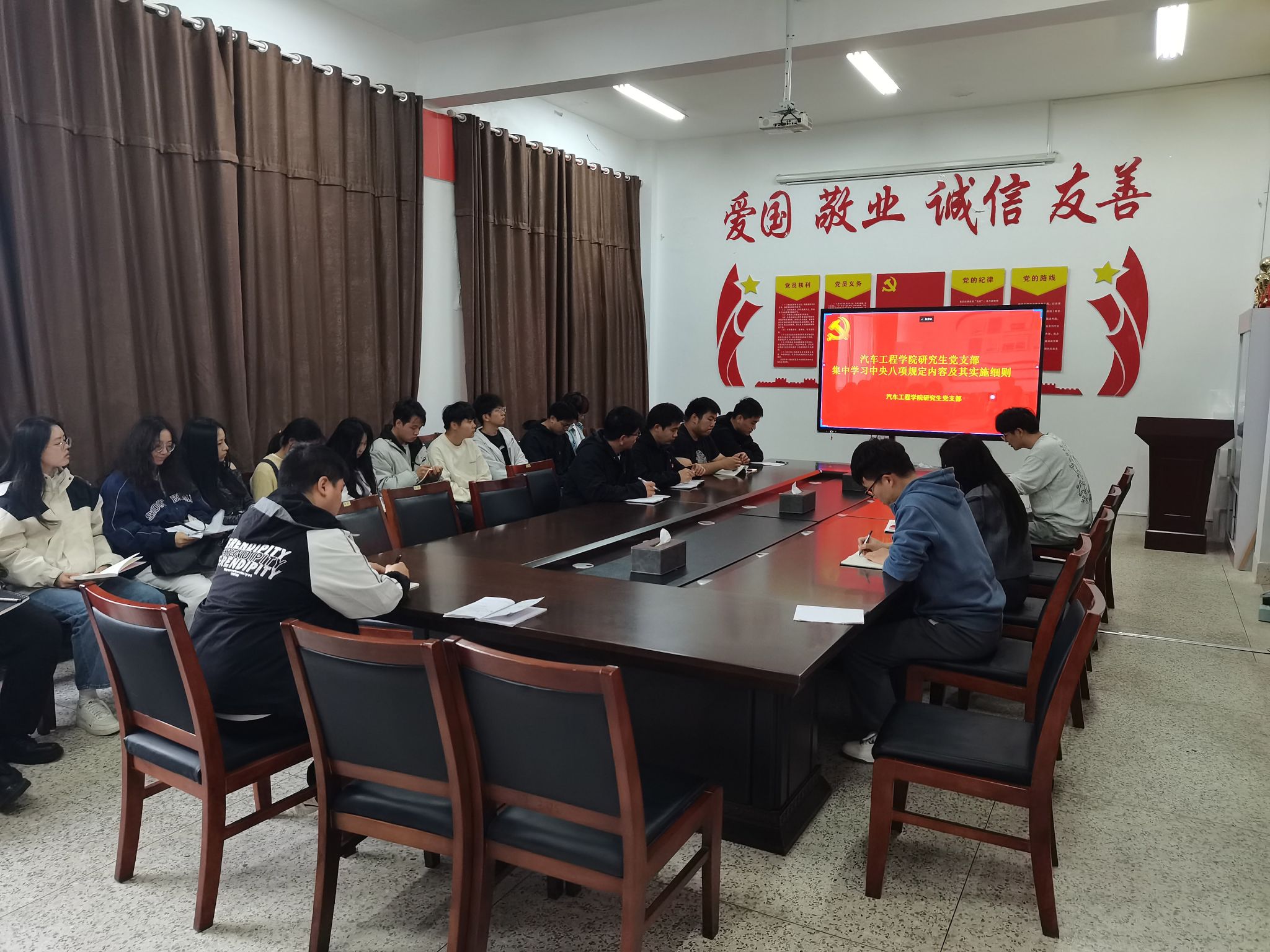 会议由张美庆领学《进一步全面深化改革中的几个重大理论和实践问题》和“中央八项规定内容及其实施细则”中规范出访活动、改进新闻报道和加强督促检查三部分内容。新时代全面深化改革取得了重大实践成果、制度成果、理论成果,是我国改革开放历史进程中最壮丽的篇章之一,为全面建成小康社会、续写“两大奇迹”提供了强大动力和制度保障,也为新征程进一步全面深化改革提供了坚实基础和宝贵经验。规范出访活动,要求出访合理规划,严格控制随行人员数量、经费等,杜绝铺张浪费与形式主义。加强督促检查确保规定有效施行。对研究生党员而言,在学术交流出访时也要注重资源合理利用,研究生党员也应在学术和生活中接受监督,保证学术诚信和遵守校园规范,对研究生党员规范自身行为具有重要意义。