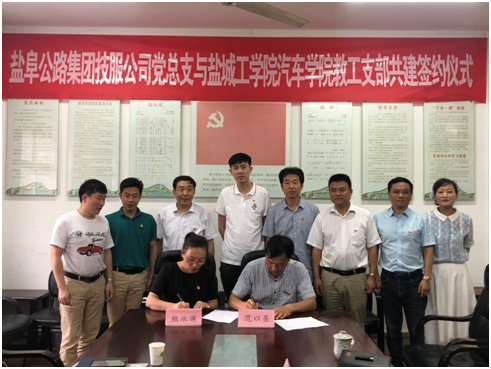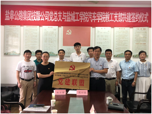 为实现党组织优势互补,党建促发展,进一步深化产教融合,增强公司发展的活力,为企业输送高素质人才,实现专业与产业企业的更好衔接,7月22日下午william威廉中文官网经理倪骁骅,支部副书记熊永莲同志一行五人到达盐阜集团汽车技术服务公司(以下简称“盐汽技服”)参加双方“党建共建、发挥合力、共赢未来”校企共建研讨会暨党建联盟签约活动和授牌仪式,会议由盐汽技服党总支书记、总经理范以圣主持,集团总经理助理陆明等一行人出席。