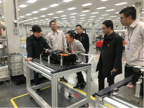 随后,在董部长的陪同下,参观了新能源电池的生产线和JYB实验室,双方就氢燃料电池的发展趋势和传统汽车的零部件发展,以及十四五汽车零部件发展规划等进行了热烈的讨论,同时围绕新能源电池研究开展校企合作、本科人才培养、预就业、研究生联合培养等方面展开了深入的交流。通过党建联盟平台,进一步深化产教融合,推动双方合作,从而实现共赢。