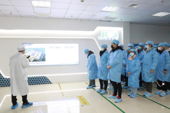 捷威动力盐城基地二期技术部于经理带领参观讲解,为大家介绍了产线上一个电池的“前世今生”,盐城基地二期设备部代经理也全程陪同。通过参观生产基地,对该公司有了初步的认识:主营业务为新能源汽车用锂离子动力电池、模组及电池系统等全体系产品的制造和销售。专注于生产软包叠片锂离子动力电池产品,用于满足PHEV(插电式混合动力汽车)、BEV(纯电动汽车)、HEV(混合动力汽车)等高端新能源汽车的应用需求,为全球一流的整车企业客户提供系统解决方案。