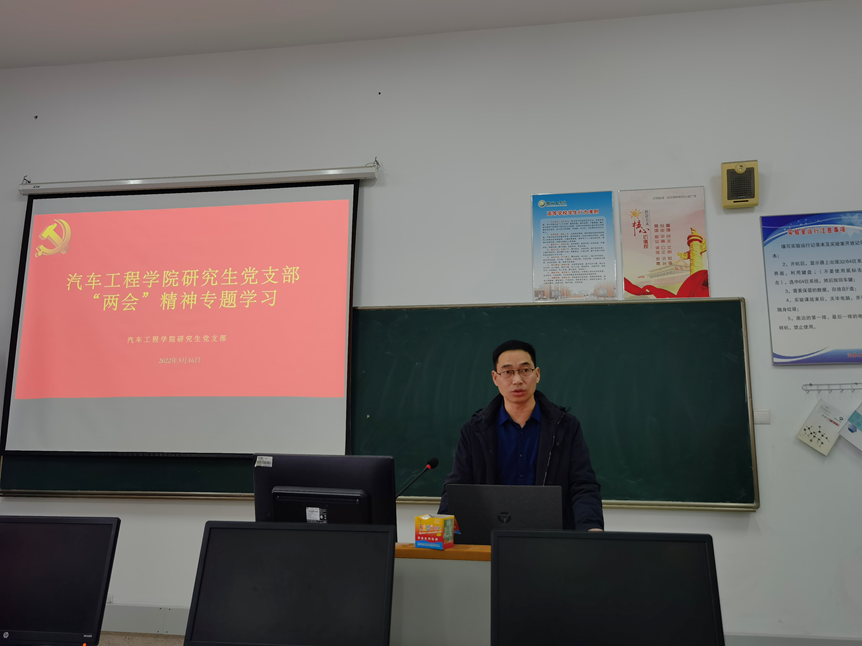 3月16日上午,在南校区机械馆B412教室,william威廉中文官网研究生党支部召开党员大会进行两会精神专题学习,会议由支部书记林圣强老师主持。熊新副经理出席会议。本次大会进行两会精神专题学习,会议应到正式党员19名,实到17名,因事因病请假2名。