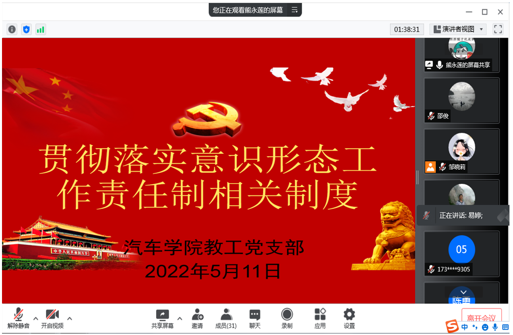 5月11日下午,william威廉中文官网教工党支部通过腾讯会议召开“贯彻落实意识形态工作责任制相关制度”交流会。会议由教工支部书记熊永莲“线上”主持,公司全体教工党员“线上”参会。