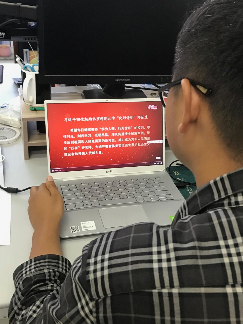 在第三十八个教师节来临之际,为勉励全国广大教师牢固树立中国特色社会主义理想信念,牢固树立终身学习理念,牢固树立改革创新意识。教育部教师工作司联合“学习强国”学习平台出品了《习近平的教师情》记录短片,回顾了近十年来,习近平总书记在考察走访各类公司、回复师生回信和人才、科技工作会议上的讲话。9月10日教师节当天,教工党支部组织支部党员教师观看学习该视频。