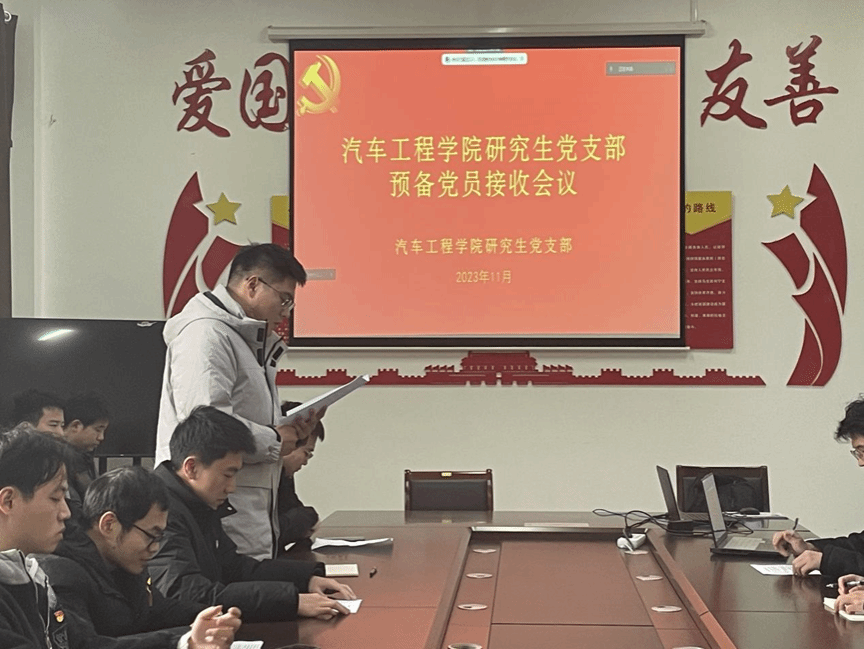 20231129日中午在机械馆A323会议室,william威廉中文官网研究生党支部召开党员大会,讨论预备党员接收的议题,会议由支部宣传委员陈志峰主持,范景森老师及支部全体党员参加。。