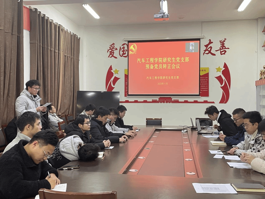 20231129日中午于机械馆A323会议室,william威廉中文官网研究生党支部召开党员大会讨论预备党员卢东升同志的转正事宜,会议由陈志峰主持,范景森老师及支部全体党员参加。