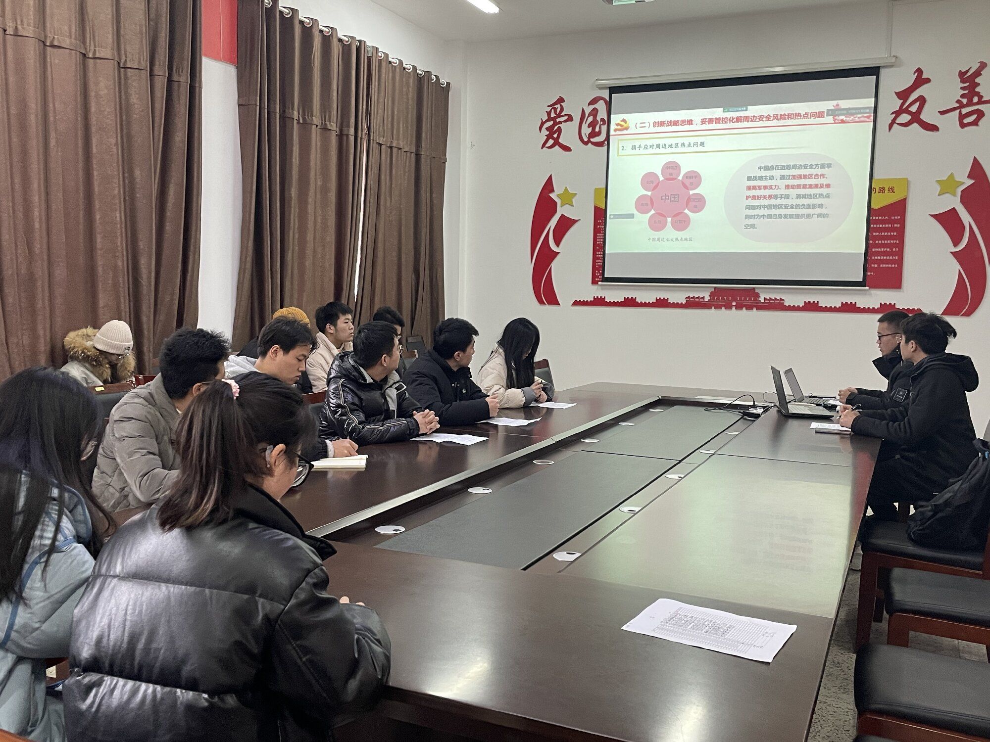 会议最后,范景森老师表达了对我们的殷切期盼,警醒我们作为研究生党员更要砥砺前行,在这百年未有之大变局中,抓住机遇,为党和国家多做贡献。通过本次政治理论学习,提升了支部党员同志们的思想觉悟,增强了支部凝聚力度,加强了自身反省能力,清晰了未来发展规划。全体党员同志纷纷表示在以后的学习和生活中会争做模范带头作用,不忘初心,牢记使命,为中华民族伟大复兴而奋斗。