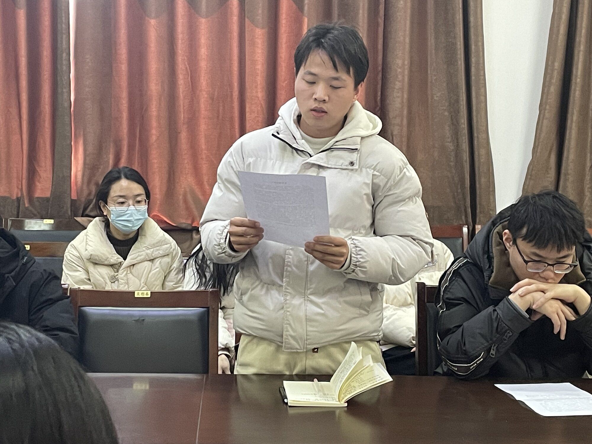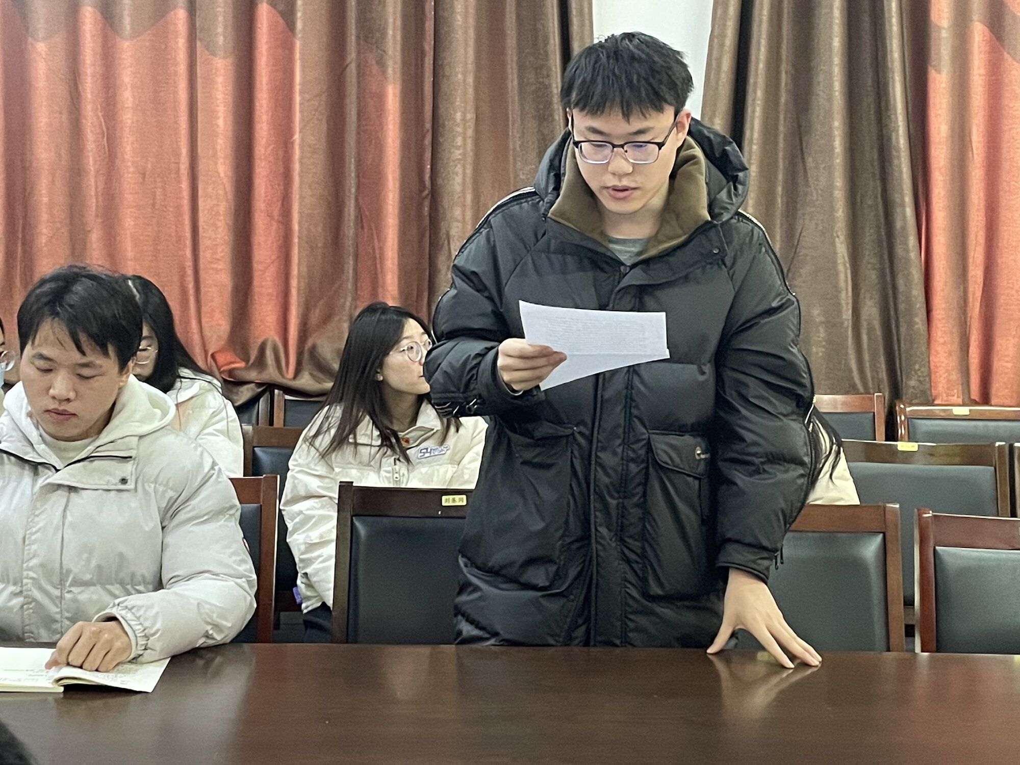 会议开始,陈志峰同志就本次政治理论学习展开了领学。会议中,陈志峰同志就“习近平总书记在中共中央政治局第十一次集体学习时的重要讲话精神”做出了深刻解读。对发展新质生产力的核心要素,从两个关键:“原创性”和“颠覆性”上进行了说明,并从新时代趋势和研究生自身环境等角度考量,强调了我们青年研究生的时代使命,引起了同学们的强烈反响。