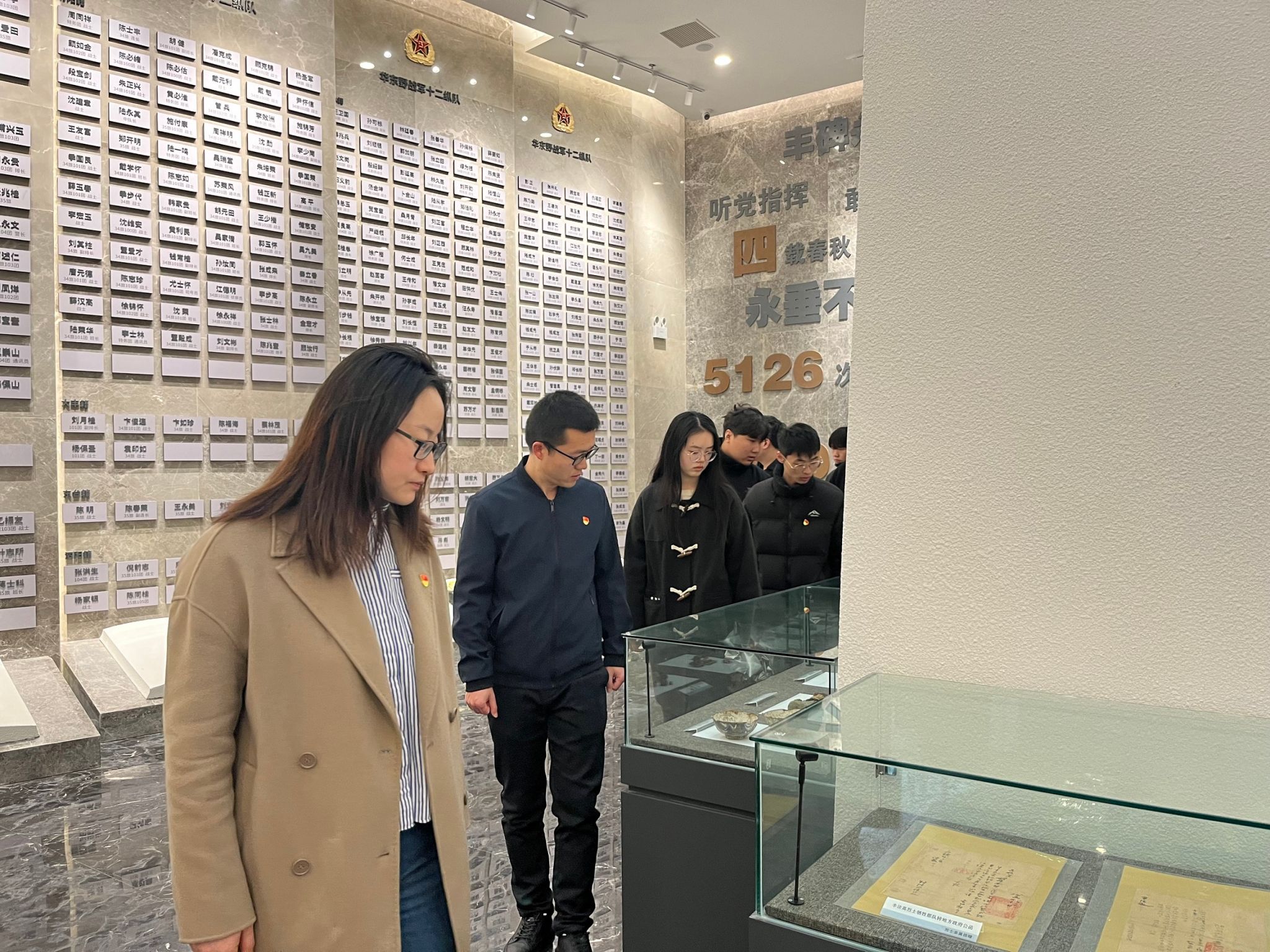 师生们首先参观了烈士事迹陈列室,深入了解革命先烈的英勇事迹和崇高精神。在讲解员的讲解下,大家深刻感受到了先烈们为了民族独立和人民解放所付出的巨大牺牲和不懈努力。随后,全体师生整齐列队,来到烈士纪念碑前,肃立默哀。在庄严肃穆的氛围中,大家默默悼念着长眠于此的烈士们,向他们致以最崇高的敬意。默哀结束后,全体党员紧握右拳在纪念碑前重温入党誓词,铿锵有力的誓言在陵园上空回荡,彰显了党员们坚定的理想信念和不忘初心、牢记使命的决心。最后,党员们向烈士纪念碑敬献鲜花,表达了对先烈的缅怀之情。一朵朵白菊,代表着党员们对先烈的敬仰和怀念,也象征着红色基因在新时代的传承和发扬。