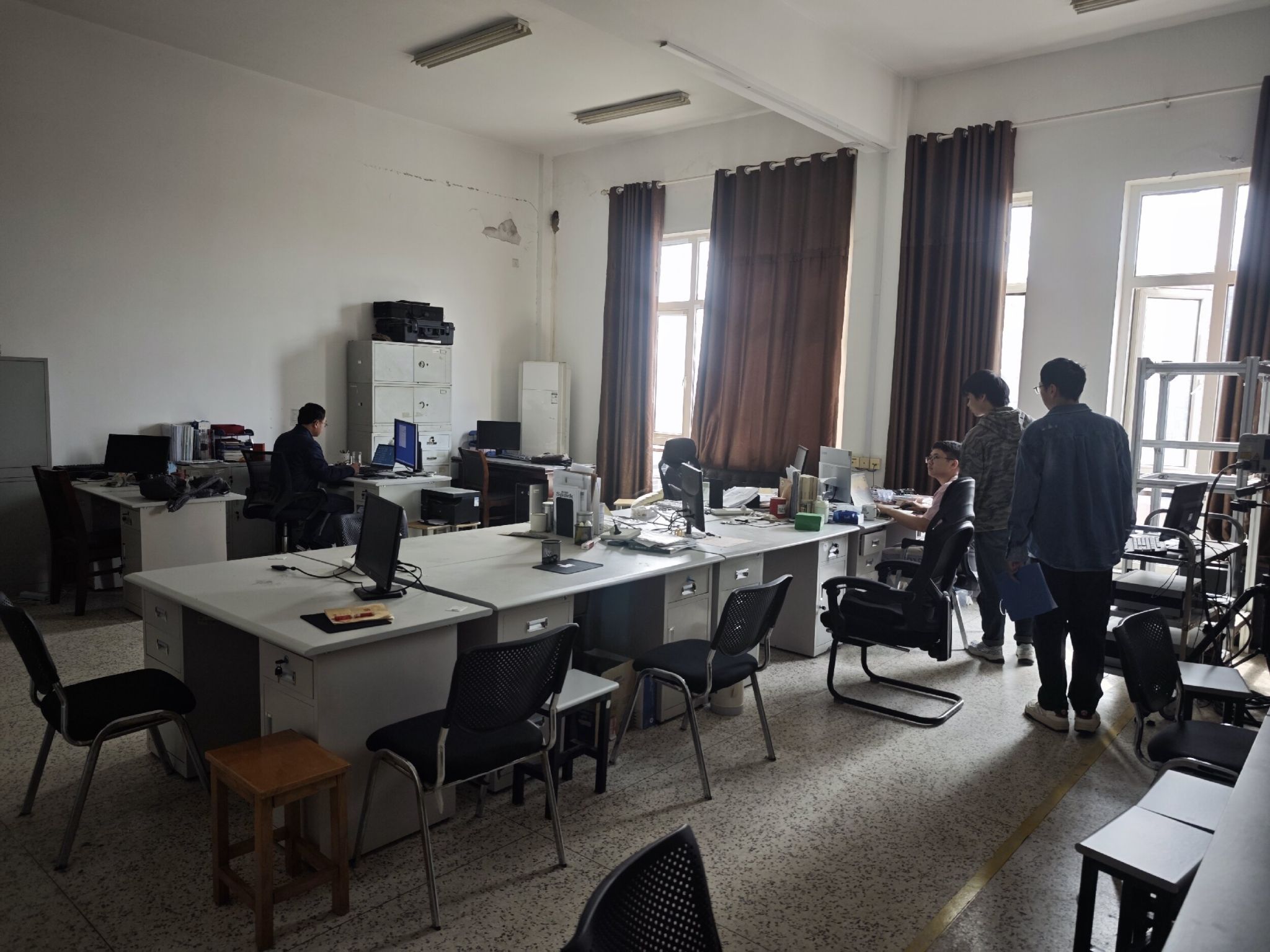 排查中,服务队深入各个实验室,对用电设备、线路布局、配电设施、实验台面清洁、危化品存放、废弃物分类、通风系统运行等进行了全面排查,重点对危化品存放、实验设备接地规范性、大功率仪器的使用安全性、插线板的过载老化以及私拉乱接等进行了重点排查。针对发现的问题,服务队现场提出了针对性的整改建议,督促各实验室做好安全卫生工作,切实维护师生的人身财产安全,营造优良的工作环境。