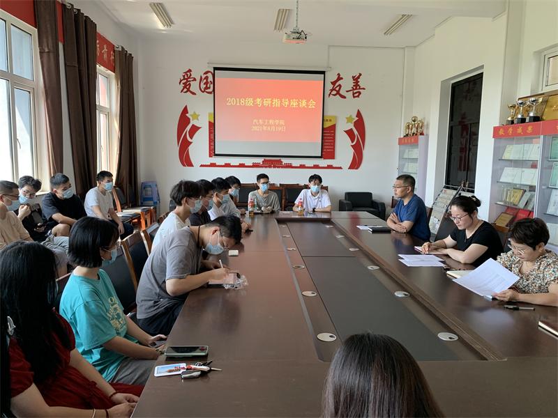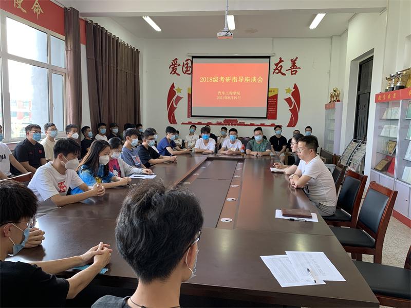车辆工程系主任郑竹安、能源与动力工程系主任严军、汽车服务工程系主任汤沛三位老师分别从考研科目复习、志愿填报院校选择、心理调整、机会把握等方面对同学们进行指导。B能动181员工朱越峰说:“感谢公司老师的鼓励与慰问,不仅为我们送来了夏季清凉,也为我们备考复习注入了新动力。”