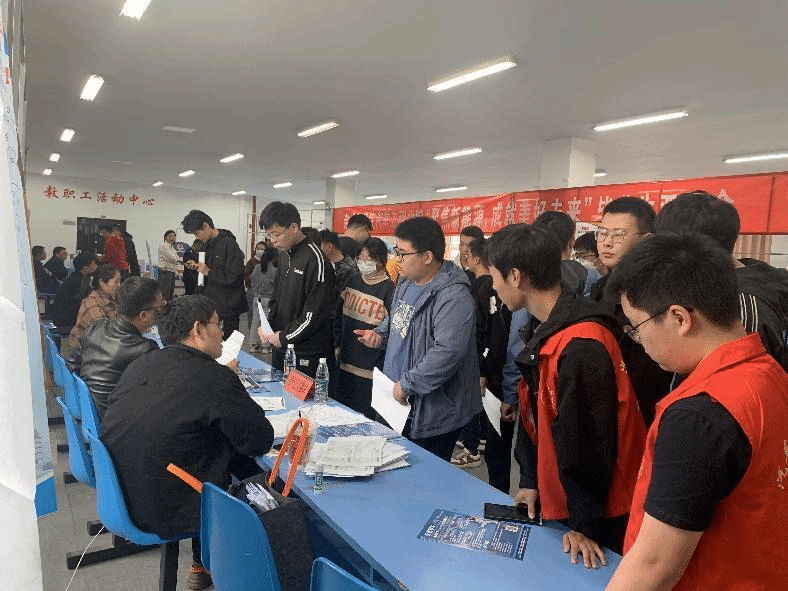 4月13日下午,在南校区师生活动中心一楼就业市场,公司举办毕业生专场招聘会。本次招聘会邀请了理想汽车、沃尔沃汽车、扬州亚星客车、通威太阳能、金科森电子、安徽鑫铂铝业等9家省内外企业参加,提供就业岗位近300个。吸引汽车、机械、电气等二级公司近200多名应届毕业生到场,现场气氛热烈,企业收到简历200余份。公司副经理熊新到现场与企业招聘负责人交流,了解企业用人需求和毕业生职业发展前景,希望与企业在毕业生就业实习等各方面保持长期合作。