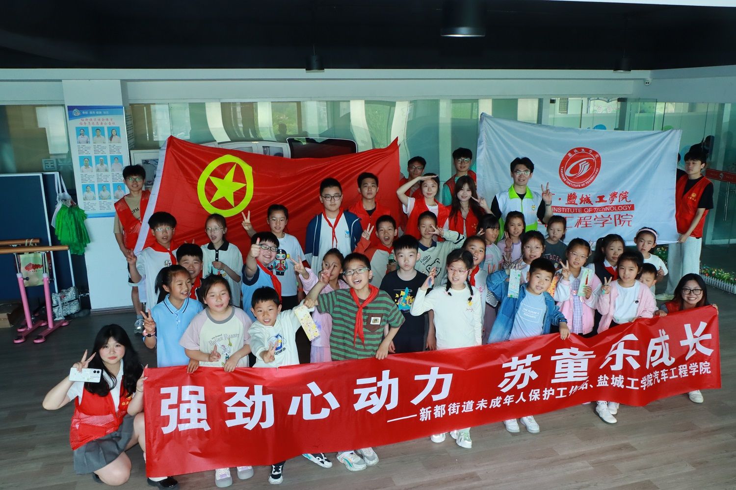 为庆祝六一国际儿童节,给予儿童关爱,促进儿童健康成长,6月1日上午,汽车工程学院组织青年志愿者赴盐南高新区新都街道未成年人保护站开展“强劲心动力,苏童乐成长”儿童节主题团日活动。