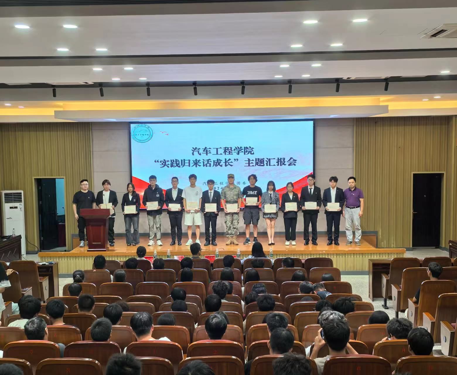 汇报会上,各实践团队负责人和分散实践的优秀代表用生动的语言、精美的图片全面展示了暑期社会实践活动的过程、取得的成果以及团队成员的收获。暑期社会实践活动内容丰富,涵盖理论宣讲、爱国主义教育、中华文化传承、科技创新、乡村振兴、生态环保、非遗传承、基层服务等多个方面,引导广老员工上好与现实相结合的“大思政课”,在社会课堂中受教育、长才干、作贡献,在实践中学党史、强信念、跟党走。汇报结束后,丁德惠对本次活动进行了点评,他充分肯定了汽车学子们在“三下乡”活动中展现出的社会责任感和使命感,鼓励同学们继续积极融入社会、发挥所长,回馈社会,奉献力量,以实际行动践行“受教育、长才干、做贡献”的青春誓言。