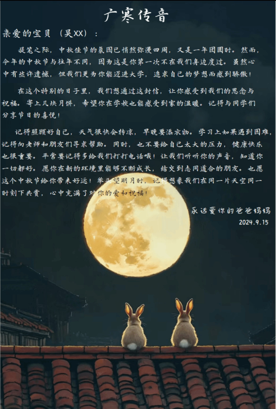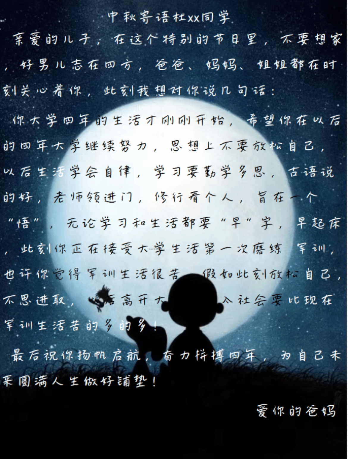 一位新生在收到家书后激动地说:“这是我第一次中秋节不能和家人团聚,心里确实有些失落。但当我看到父母写给我的信,听到他们的声音,感觉就像他们在我身边一样。这让我更加坚定了努力学习的决心,不辜负家人的期望。”