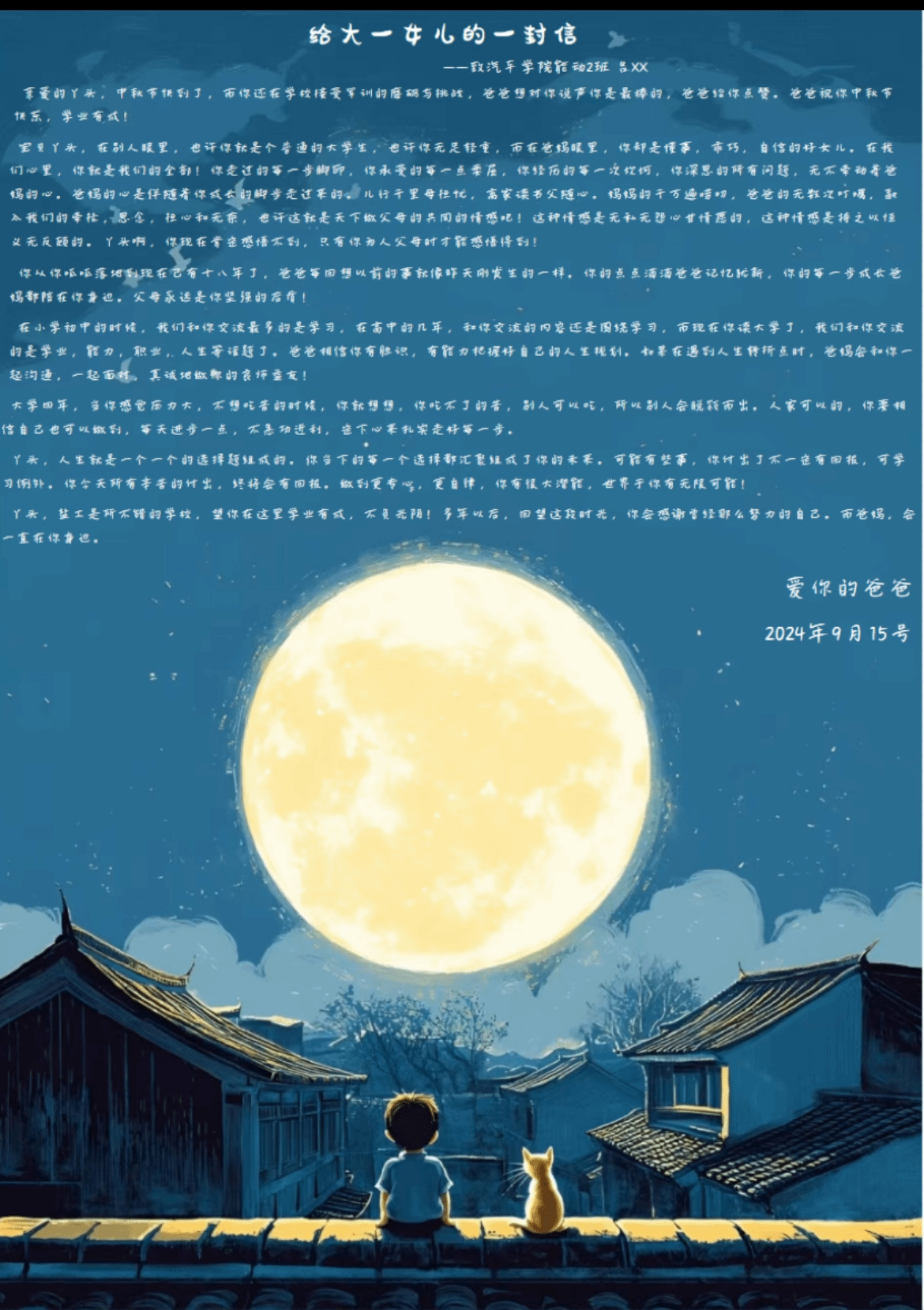 活动当天,一封封满载深情的家书、一条条温馨感人的短信以及一段段饱含爱意的视频,在公司的组织下,逐一送到了24级新生的手中。当新生们看到父母熟悉的话语、听到亲人温暖的声音时,这些来自远方的问候,如同一股暖流,温暖了他们的心房,也让他们感受到了家的温暖与力量。