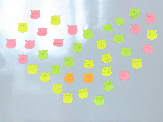 活动分为3个部分,首先由同学主动上台发言,听的学同将自己的想法写在小卡片上,用来赠予。当演讲结束后,分发便利贴给每个同学,写上对其他同学的称赞,贴成巨大的爱心。本次的团日活动一改以往的程序化,将活动生活化,让每一个同学在日常生活中去体验团日活动的精髓、快乐和意义,将团日活动融入我们的日常生活中,更好地展现了团日活动对同学们成长生活的作用,深化了团日活动的意义。整个活动过程中,每位同学认真对待,投入了自己的激情。通过本次团日活动,收集了师生之间的祝福寄语,也对促进了师生之间、同学之间的交流和感情的加深。