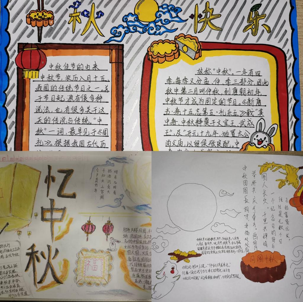 此次活动得到了同学们的积极响应,同学们提交的手抄报作品亮点纷呈。手抄报绘制以“我们的节日·中秋”为主题,旨在突出中秋节的由来、习俗以及所蕴含的文化底蕴和教育意义。同学们通过书籍阅读和网络查询,了解了中秋节的文化渊源,在收集大量资料的基础上,结合自身所感,亲手绘制了一幅幅精美的作品。主题鲜明,设计新颖,字迹漂亮,整体效果好,充分展示了同学们对中国传统文化的热爱与传承。