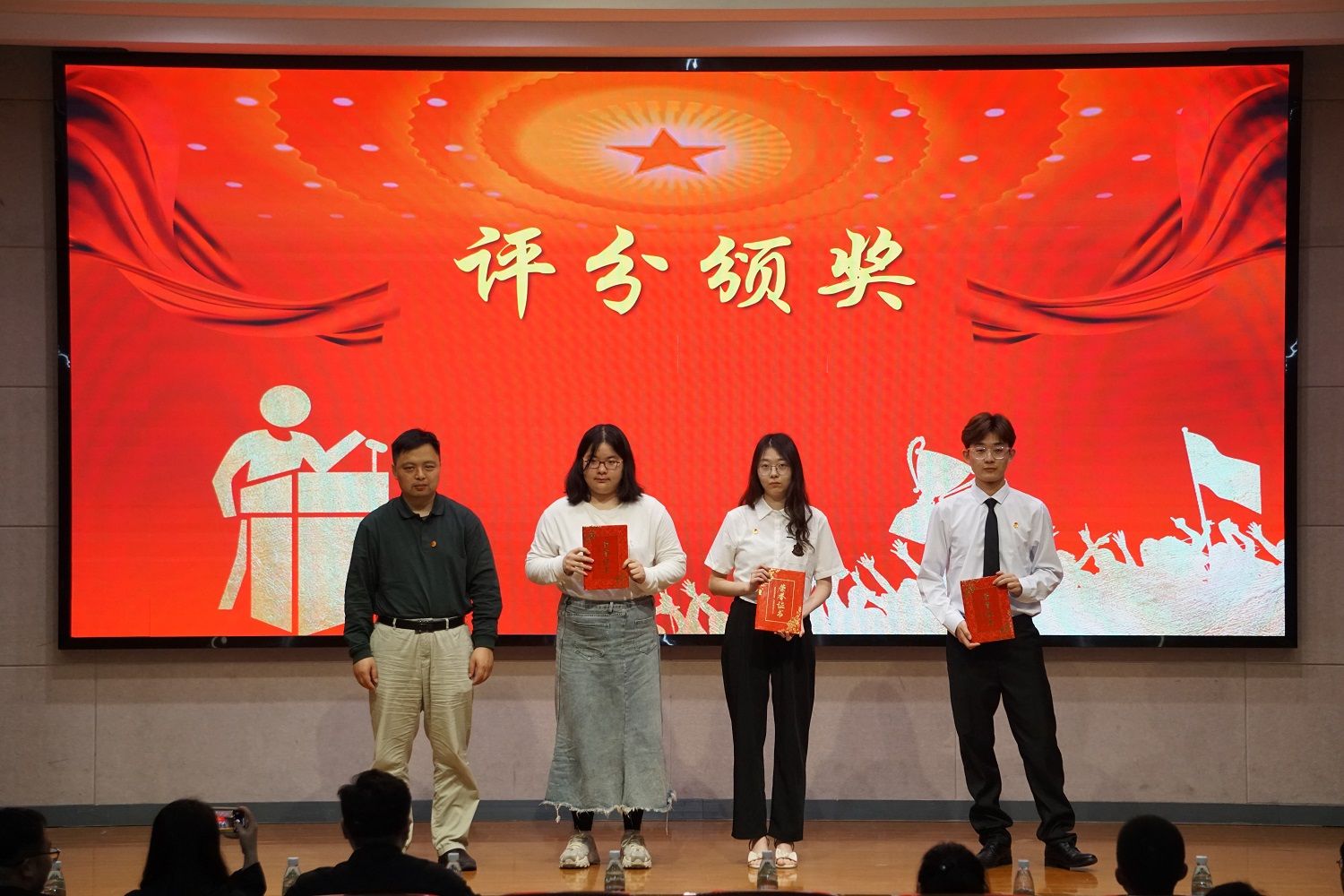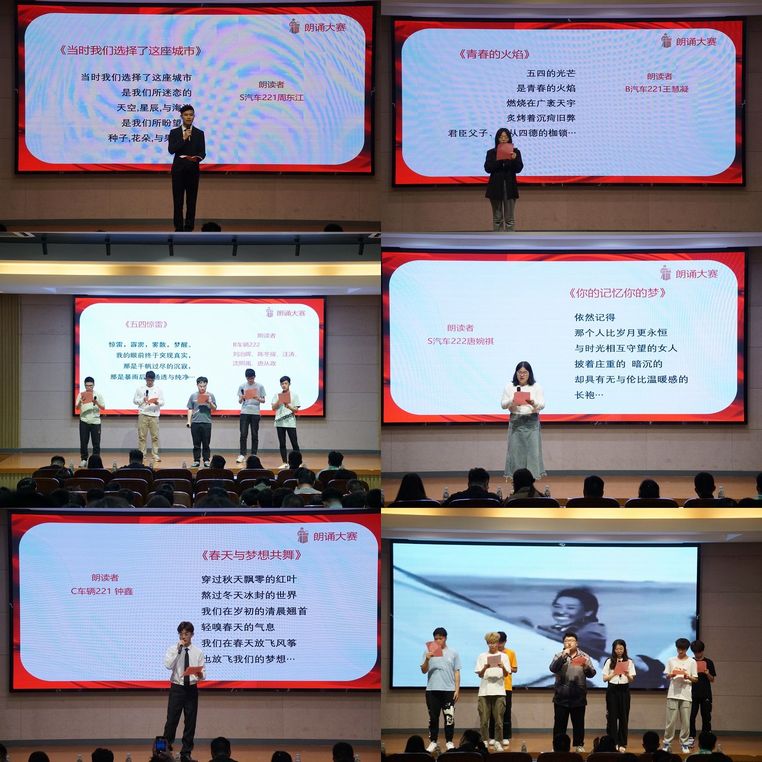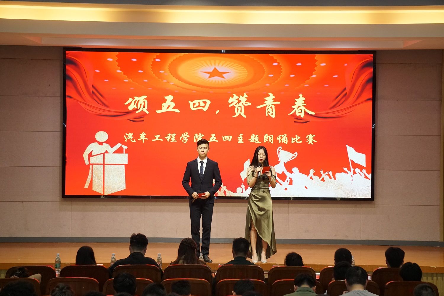 比赛正式开始前,主持人向同学们阐述经久不衰的五四精神,为本次比赛的成功举办奠定了思想基础。比赛过程中,选手们紧紧围绕主题,用真挚的感情歌颂伟大的祖国,用声音让同学们感受颂词中的五四精神,强烈表达出维护民族团结的决心。比赛现场,选手们以其如虹的气势、充沛饱满的感情和自信大方的形象赢得了评委和同学们的阵阵掌声。观众在选手的朗诵中感受到了建团一百多年来所经历的风雨磨难,现场不时爆发出热烈的掌声。所有选手展示完毕后,大家共同观看视频,对伟大五四精神有了进一步的深刻领会。
