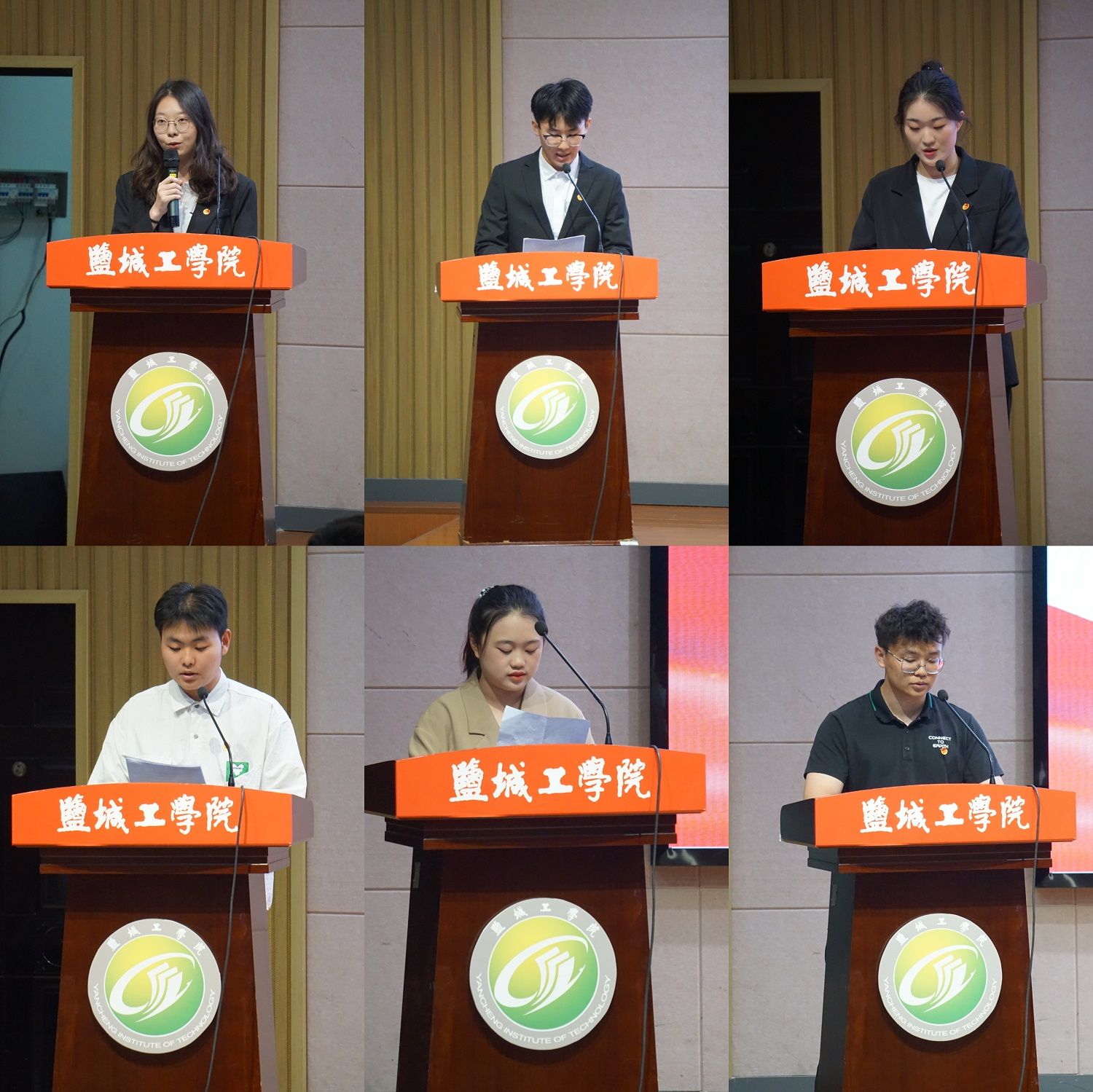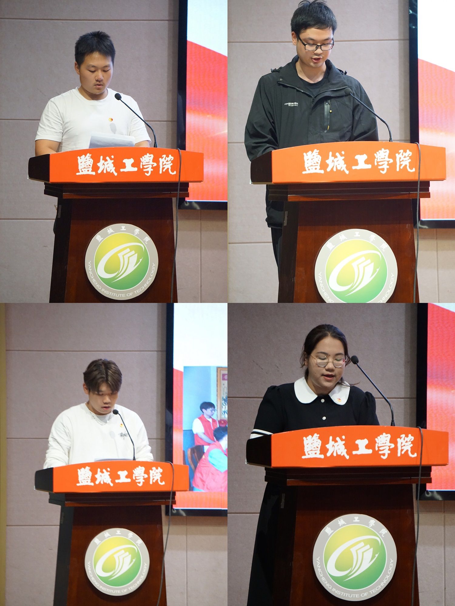 汇报会上,各实践团队负责人和分散实践的优秀代表分别上台发言,采用PPT讲演的方式,以生动的影像、丰富的图片和精心准备的汇报内容分享了实践成果,一起回顾了社会实践的精彩瞬间。“讲好‘柳堡故事’,赓续红色血脉”实践团队前往扬州市宝应县柳堡镇“二妹子”模范民兵活动中心和夏凤山烈士纪念馆参观学习,重温党的光辉历史与光荣传统,接受老一辈革命先烈的精神洗礼,并走进希望私塾和退役老兵家中开展志愿服务工作。“科技赋能农业生产,青春融入乡村振兴”实践团队赴大丰区三龙镇开展支农服务,团队成员使用公司党建联盟共建单位江动集团捐赠的零件,现场装配发动机和水泵,装配过程中认真讲解部分零部件的功能,并向参与活动的农技人员强调了发动机和水泵的基本养护和维修的要点。分散实践的各位优秀代表实践内容丰富、形式多样,包括“敬老爱老”志愿服务、参与社区反诈宣传和环境保护工作、到汽车修理中心实习等。