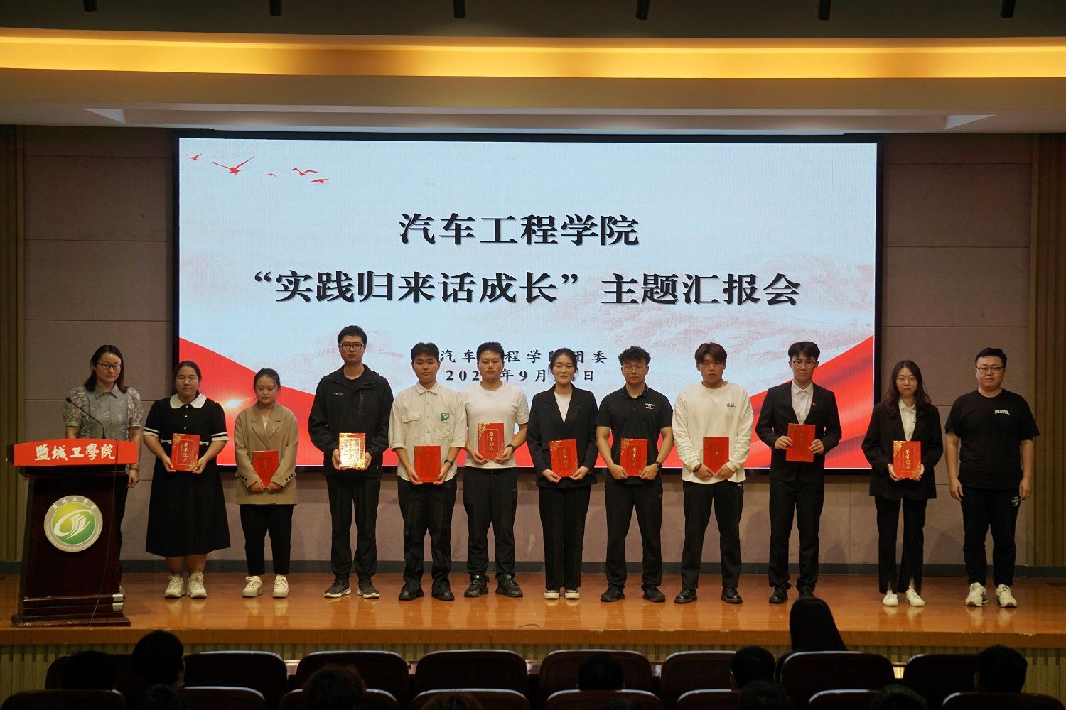 风采展示结束后,孙进代表公司团委汇报暑期社会实践工作总结,姜华为优秀团队和个人颁发荣誉证书。本次暑期社会实践共收到各年级社会实践报告700余份,内容丰富、形式多样、感悟深刻,广大同学在服务社会的同时,带着问题去实践,自身能力和专业素质都得到了锻炼和提高,达到了“服务社会、锻炼自我”的目标。其中,实践团队的两项活动受到新华网江苏频道、中国共青团杂志、江苏共青团、扬子晚报、盐城晚报、宝应日报等多家媒体的宣传报道。