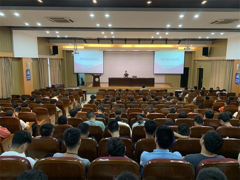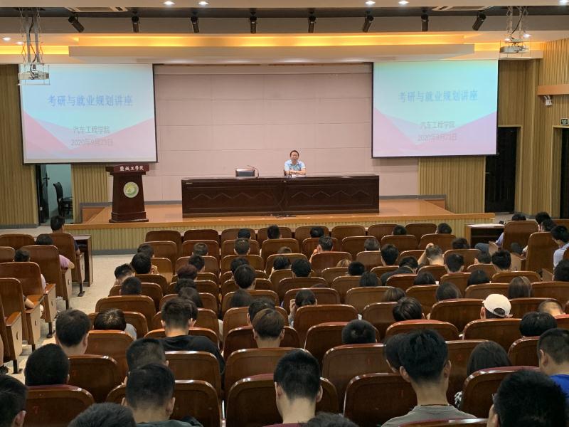 2020年9月23日下午,在机械馆报告厅,公司举办考研与就业规划讲座,公司党总支书记张雷、 汽车服务工程系主任汤沛出席,汽车服务工程专业2017、2018级同学300余人参加。