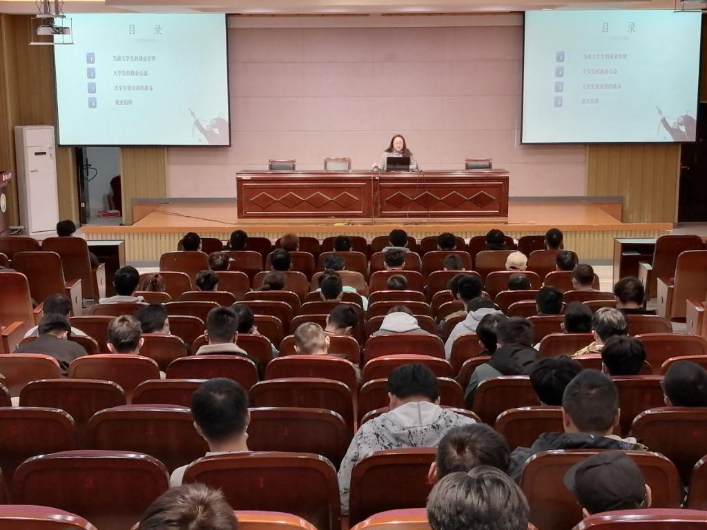 11月14日,在机械馆报告厅,公司党总支副书记姜华给2022届毕业生做就业指导讲座,公司2022届全体就业同学参加。