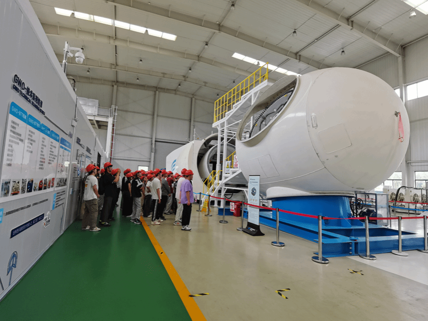 实习期间,能源与动力工程专业系教师带领员工们参观了金风科技集团的实验中心、海上实训基地和大丰总装厂。在实验中心,员工们了解了最新的风力发电技术和设备的疲劳测试流程,了解了风电设备从设计到测试的全过程。在海上实训基地,员工们亲身体验了海上风电场的运行环境,了解到海上风电工作人员的模拟逃生过程。随后,员工们在大丰总装厂见证了风力发电机组的组装和调试过程。这些参观活动让员工们对风电产业有了更直观和深入的认识,激发了他们对新能源技术的浓厚兴趣。