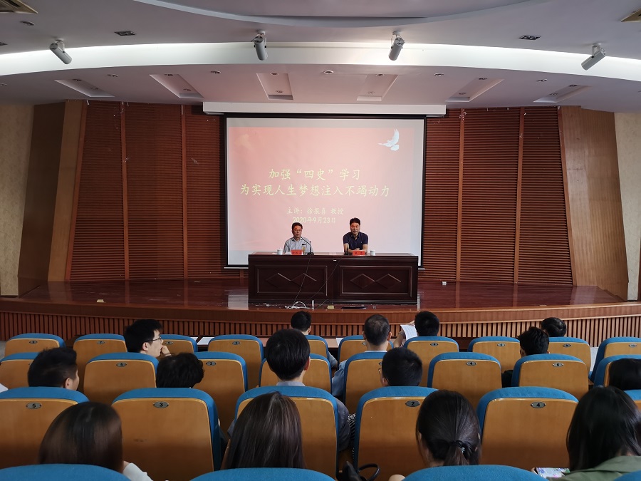 徐主任在报告中就党史、新中国史、改革开放史、社会主义发展史的关系和有关内容作了讲解,阐述了伟大抗疫精神,希望公司师生领悟“欲知大道必先知史”古训,在“四史”学习中和伟大抗疫精神中汲取前进动力,正确定位成长目标,酷爱读书,历练自我,在第二个百年目标中谱写精彩的人生华章。报告内容丰富,史论结合,具有较强的思想性和指导性,受到与会师生的欢迎!