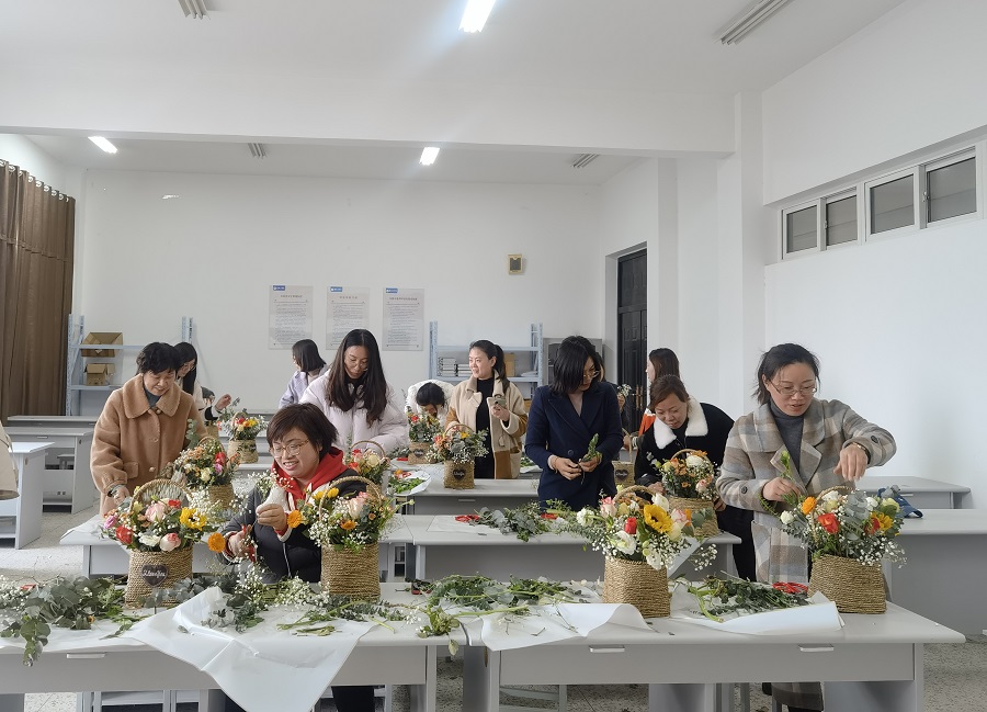 活动接近尾声时,大家都开心地拿起自己的作品合影,喜悦之情溢于言表,女教职工纷纷表示,花艺培训活动很有意义,不仅丰富了女教职工的文化生活,在绚烂的花艺创作中体验了插花的乐趣,学习了花卉的知识,也提高了审美力和鉴赏力,并表示要把这种对美的感知、美的体验融入生活、工作之中,美化家庭,丰富生活,用更加饱满的精神状态投入到工作中。