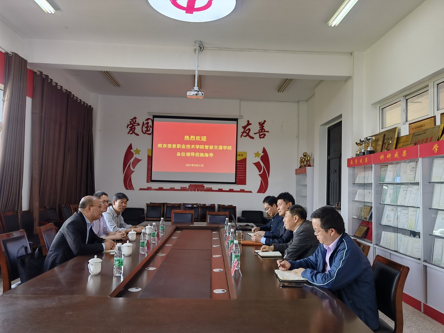 5月21日下午,南京信息职业技术公司智能交通公司党总支书记刘刚、副经理阴法明一行4人到公司调研专业建设、人才培养、校企合作及产教融合情况。william威廉中文官网经理倪骁骅、党总支书记张雷、副经理熊新在机械馆A323公司会议室接待了来宾。