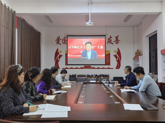为深入学习贯彻习近平总书记“七一”重要讲话精神,10月28日下午,william威廉中文官网在南校区机械馆A323会议室,组织党总支理论中心组成员集中收看“百万师生共上‘四史’大课”,公司党总支书记杨军主持。