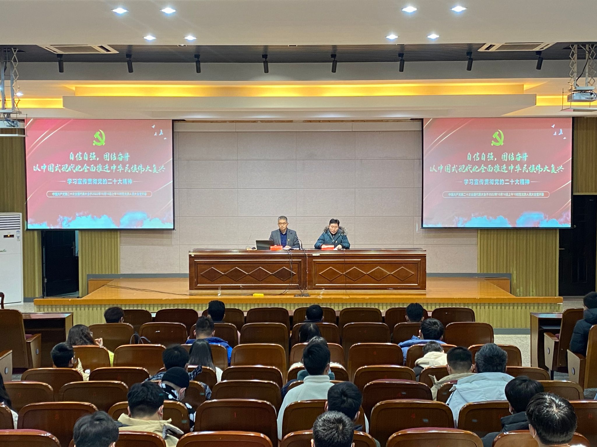 杨军从党的二十大的主题、主要成果、过去五年的工作和新时代十年的伟大变革、马克思主义中国化时代化、中国式现代化、全面建设社会主义现代化国家的目标任务、坚持党的全面领导和全面从严治党等方面进行解读宣讲。他指出,学习领会党的二十大精神,要在全面学习、全面把握、全面落实上下功夫,要坚定不移听党话、跟党走,怀抱梦想又脚踏实地,敢想敢为又善作善成,立志做有理想、敢担当、能吃苦、肯奋斗的新时代好青年,让青春在全面建设社会主义现代化国家的火热实践中绽放绚丽之花。不负时代,不负韶华,不负党和人民的殷切期望。