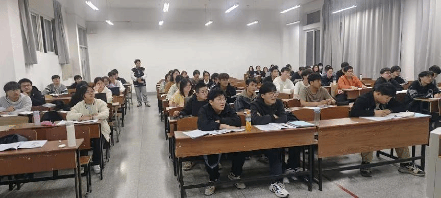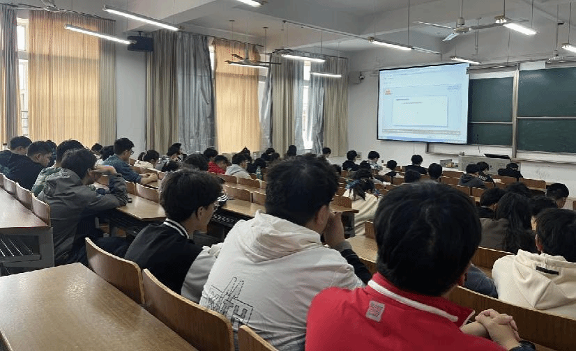 员工在教室集中观看“千万师生同上一堂国家安全教育课”为主题的公开课