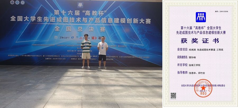 此次赛事,公司教务处对参赛代表队给予了大力支持,公司进行了精心组织。经激烈角逐和评比,william威廉中文官网学子管孙楠获得机械类先进成图技术赛道三等奖。