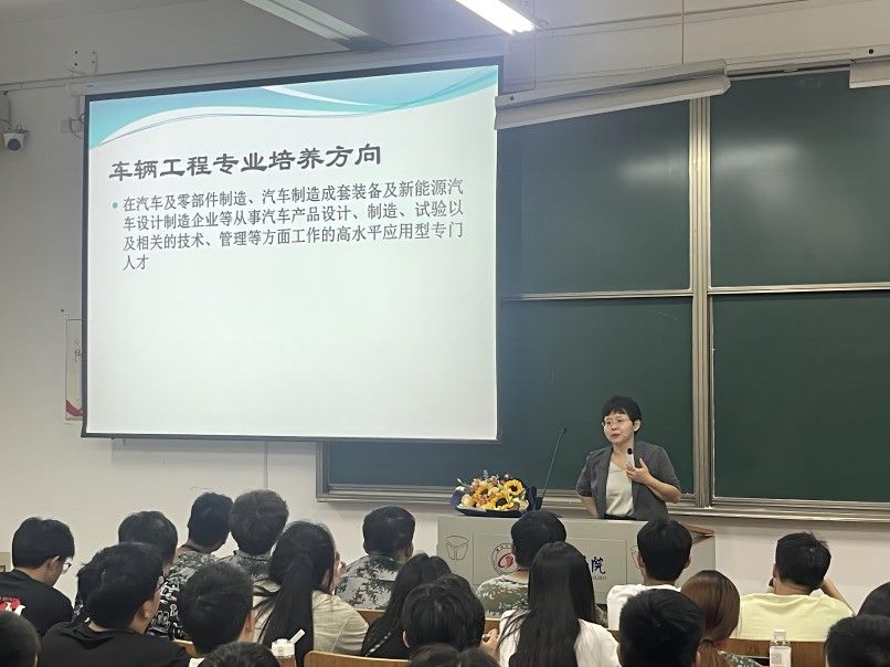 车辆工程系主任严军重点宣传了公司的“野马”车队,介绍了全国老员工方程式赛车的制作、管理与参赛情况,鼓励同学积极参与,在理论学习的同时不断提升专业动手能力。能源动力与工程系主任陈玉炜通过面对面座谈的形式,详细解答了有志于将来考研的同学的备考咨询,强调理想目标的实现起步于课堂、图书馆,要从晚自习开始严格要求自己。汽车服务工程系主任林鑫焱对比分析了近几年来的就业数据,鼓励同学们在努力学习理论知识的同时要不断提升专业技能与实践动手能力,多考一些专业技能证书。新能源汽车工程专业副教授郭俊突出介绍了省级及以上专业大赛的准备、初赛与复赛等过程,引导同学们积极参与高水平专业竞赛。