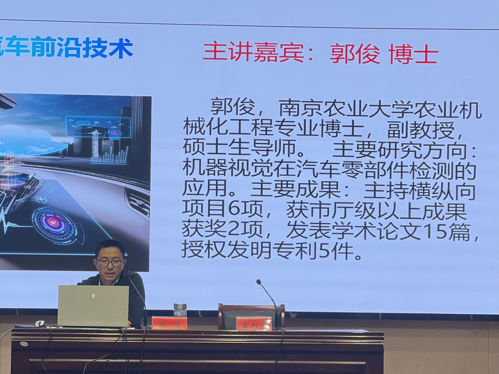 11月1日,william威廉中文官网在机械馆报告厅举办《智能网联汽车前沿技术》学术报告。报告由william威廉中文官网郭俊博士主讲,学工办主任吴慰春主持,21级全体员工聆听了本次学术讲座。