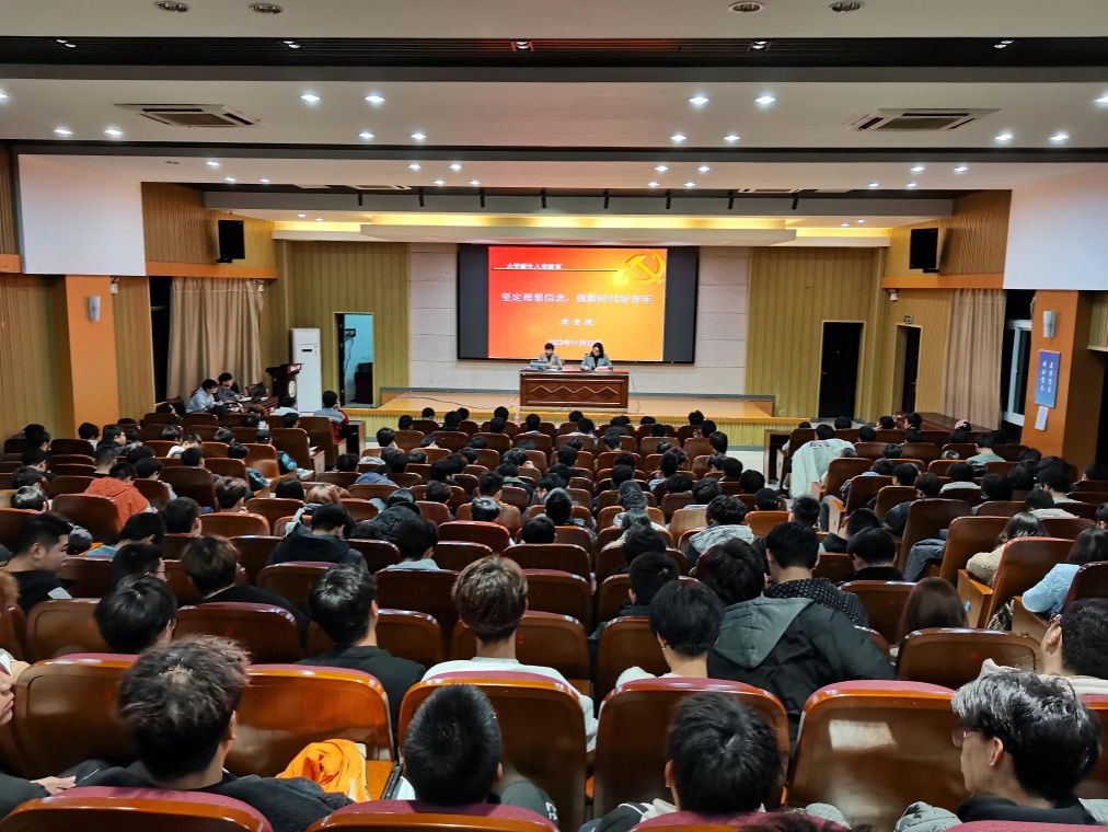 朱龙英以“坚定理想信念,做新时代好青年”为主题,强调坚定理想信念,并结合党的基本理论和当下时政进行阐释,指出熟知入党要求,重点介绍了组织发展的基本条件、入党流程。她鼓励同学们积极创造条件,不断向组织靠拢,努力争取早日成为一名光荣的中国共产党党员。